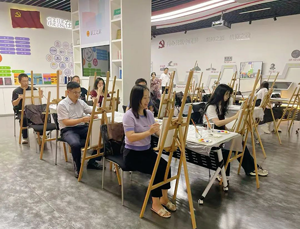 活动现场化作穿越时空的红色课堂。党员们凝神执笔,以中共一大南湖会议为蓝本,将象征中国革命源头的“红船精神”——开天辟地、敢为人先、坚定理想、百折不挠的精神图腾,一笔一画倾注于画布之上。每一道线条的勾勒、每一抹色彩的渲染,都是对建党伟业的深情追忆与精神皈依。艺术无声,却激荡着信仰的洪流,党的诞生史诗在丹青流转间焕发出震撼人心的力量。这既是对根脉的溯源,更昭示着普路通人传承红色基因、在服务国家战略的新征程上砥砺前行的坚定信念。